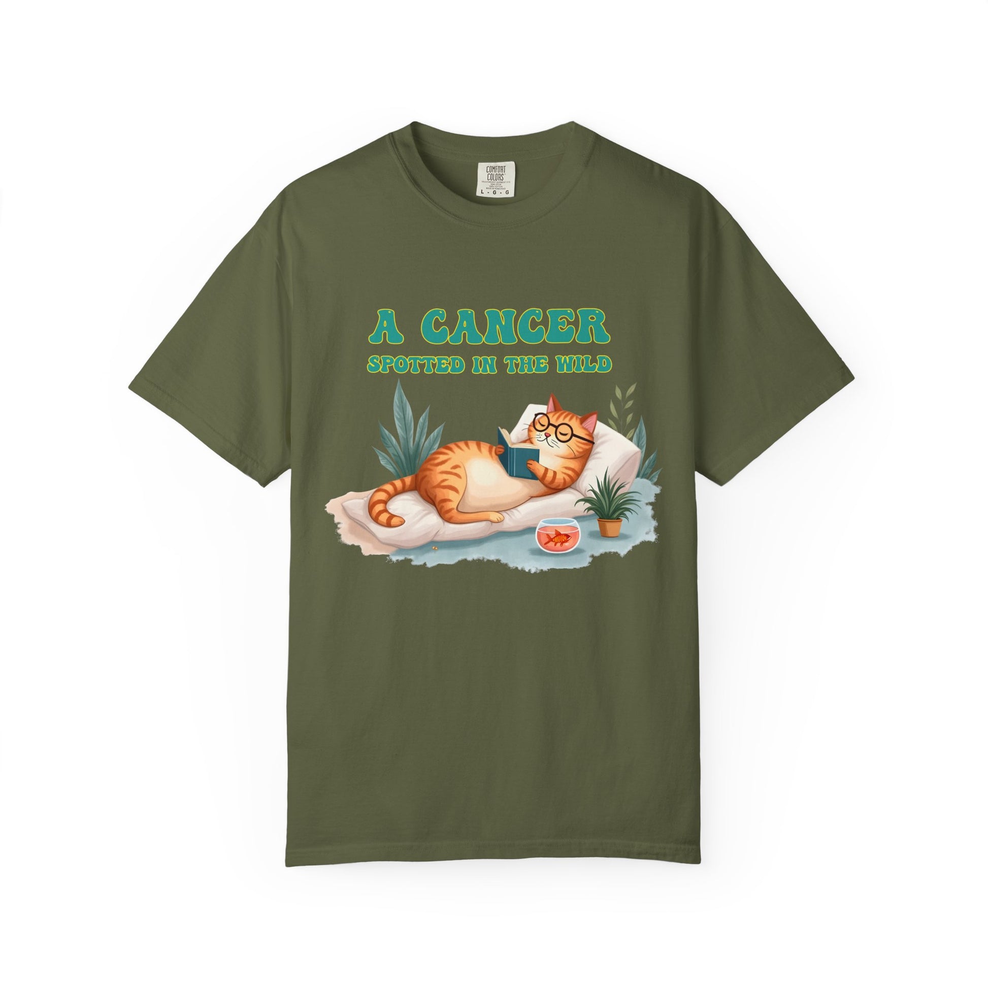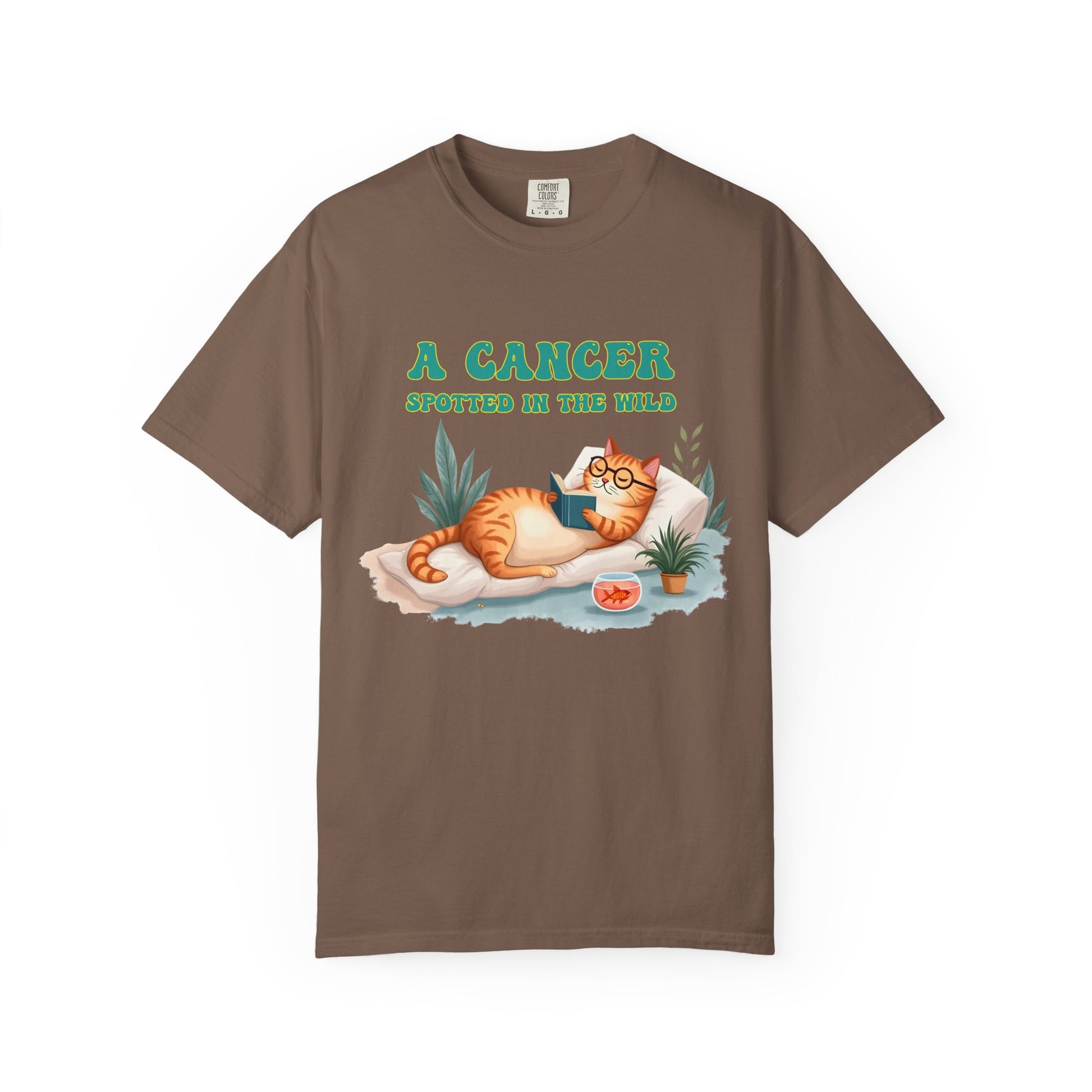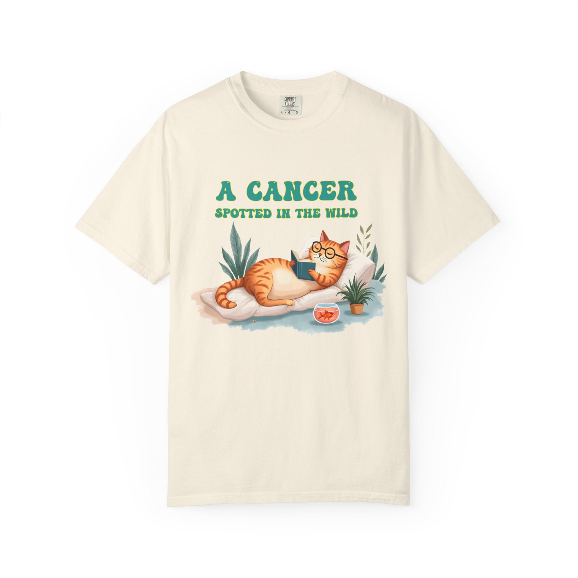 Introverts unite… separately, in cozy corners, with a book and a snack. This tee captures the coziest creature of the zodiac in its natural habitat — lounging with a novel, some houseplants, and a bowl of snacks (or emotional support goldfish?). Featuring a chill orange cat living its Cancerian dream, this Cancer zodiac t-shirt is a purrfect blend of zodiac humor, homebody energy, and astrological sass. Whether you're a crabby sun sign or just adore cat memes with a cosmic twist, this is your new go-to shirt for staying in and thriving.