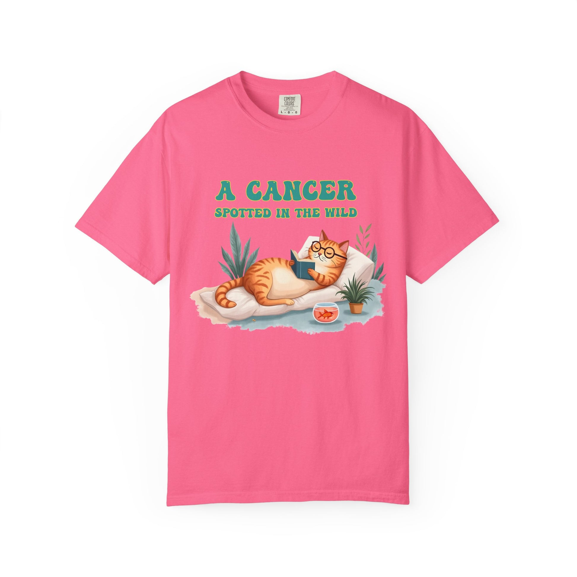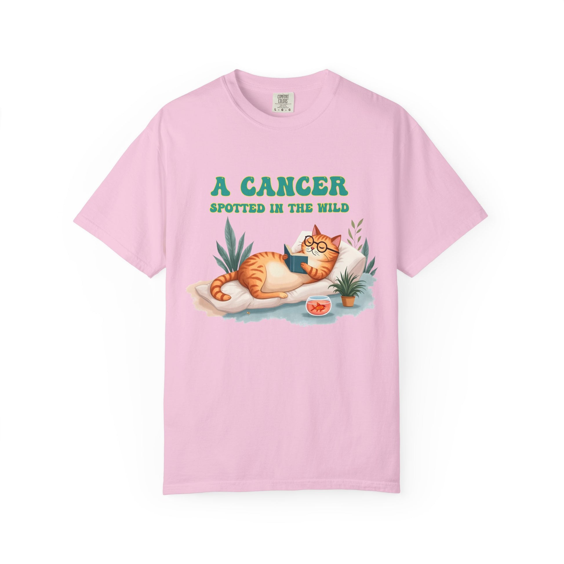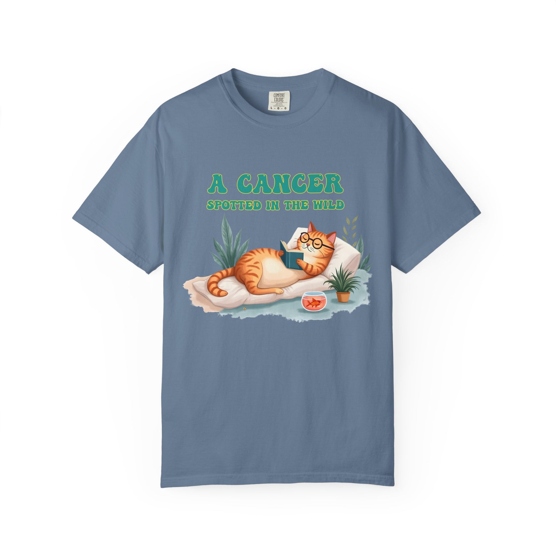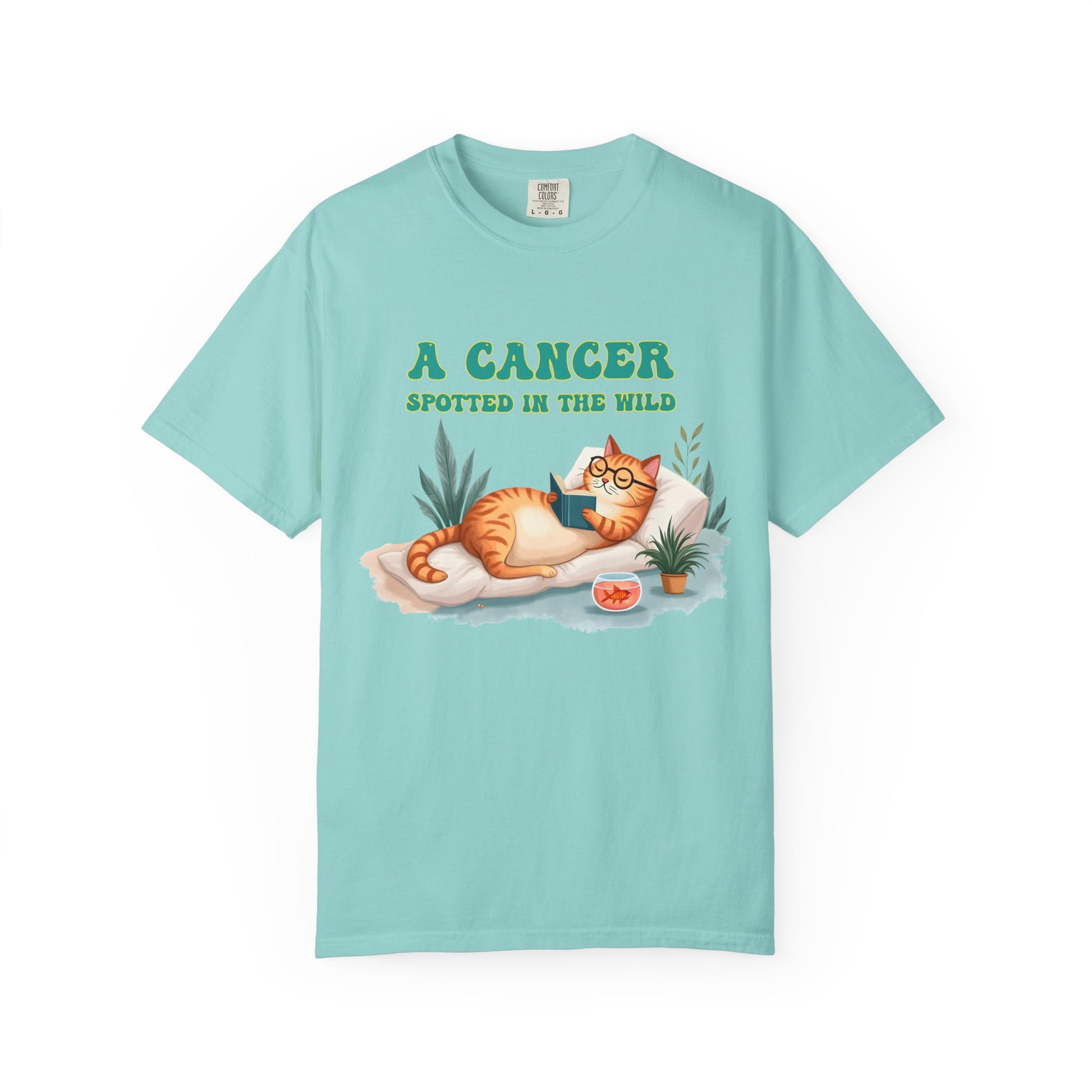 Introverts unite… separately, in cozy corners, with a book and a snack. This tee captures the coziest creature of the zodiac in its natural habitat — lounging with a novel, some houseplants, and a bowl of snacks (or emotional support goldfish?). Featuring a chill orange cat living its Cancerian dream, this Cancer zodiac t-shirt is a purrfect blend of zodiac humor, homebody energy, and astrological sass. Whether you're a crabby sun sign or just adore cat memes with a cosmic twist, this is your new go-to shirt for staying in and thriving.