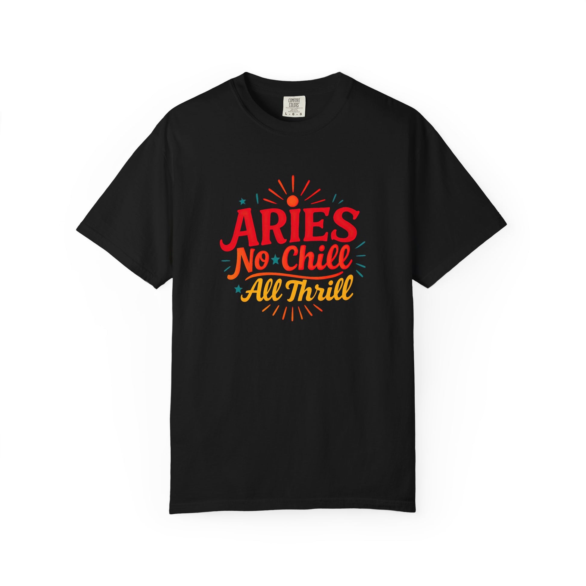 For the Aries who enters every room like it's a stage and every moment like it's a mission, this one’s got your name on it — literally. 🔥 The "ARIES No Chill All Thrill" tee is a fiery celebration of your bold, unapologetic spirit, wrapped in retro sunshine fonts and starburst flair. With vibrant pops of red, yellow, and teal, this design doesn’t whisper astrology — it shouts it with flair. It’s got that groovy, throwback energy Aries loves, with a punchy attitude that keeps up with your thrill-seeking heart. Perfect for birthdays, fiery declarations, or just proving (again) that Aries really is the main character.