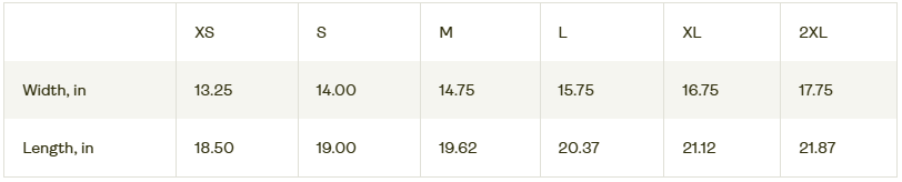 For exact measurements, please refer to the Sizing Chart tab.