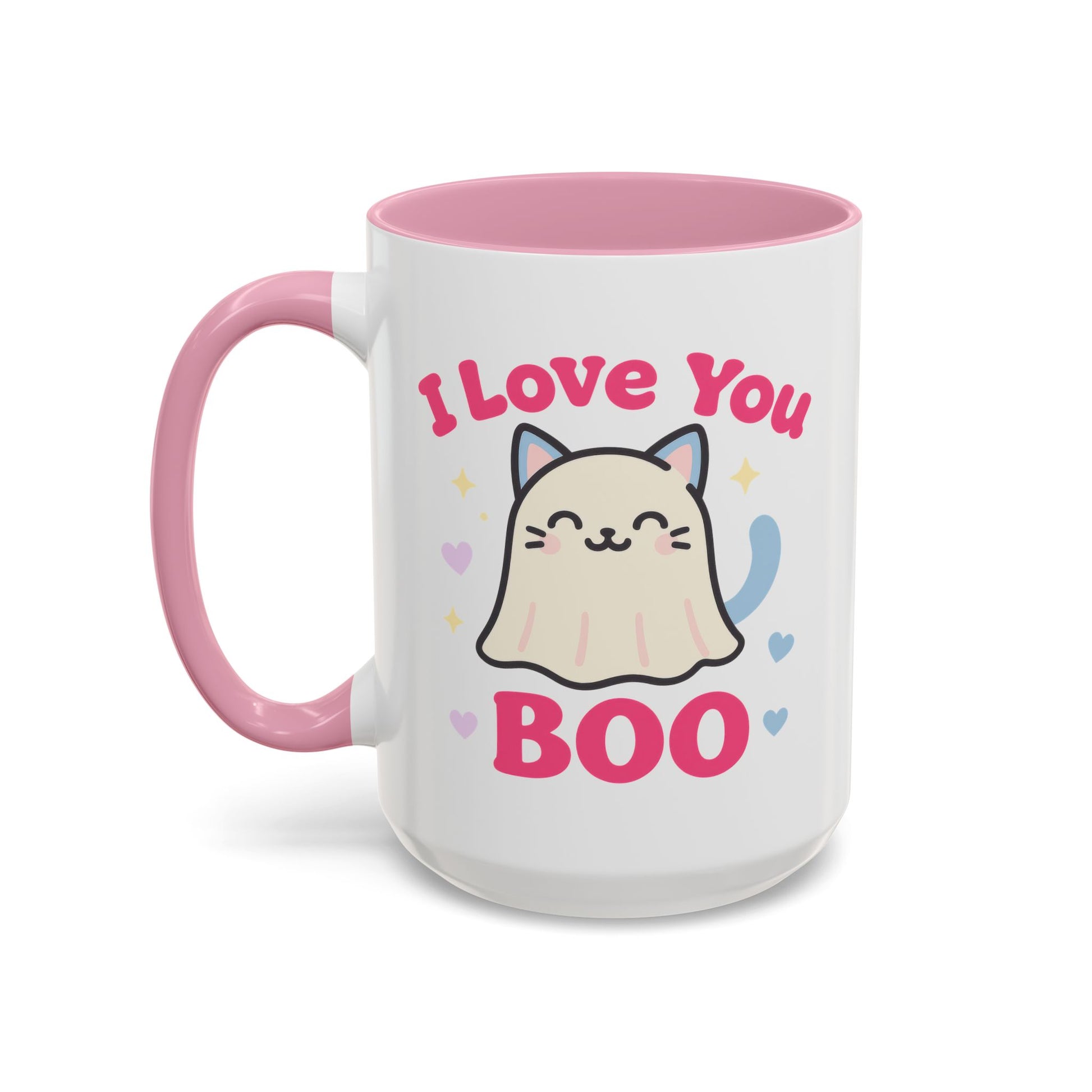 A cute little treat for someone you adore. This I Love You Boo mug features an irresistible ghost-kitty design that’s perfect for cat lovers, sweethearts, and anyone who enjoys a playful touch of feline charm. With its soft pink accents and glossy ceramic finish, it makes every sip feel cozy, cheerful, and a little bit magical.