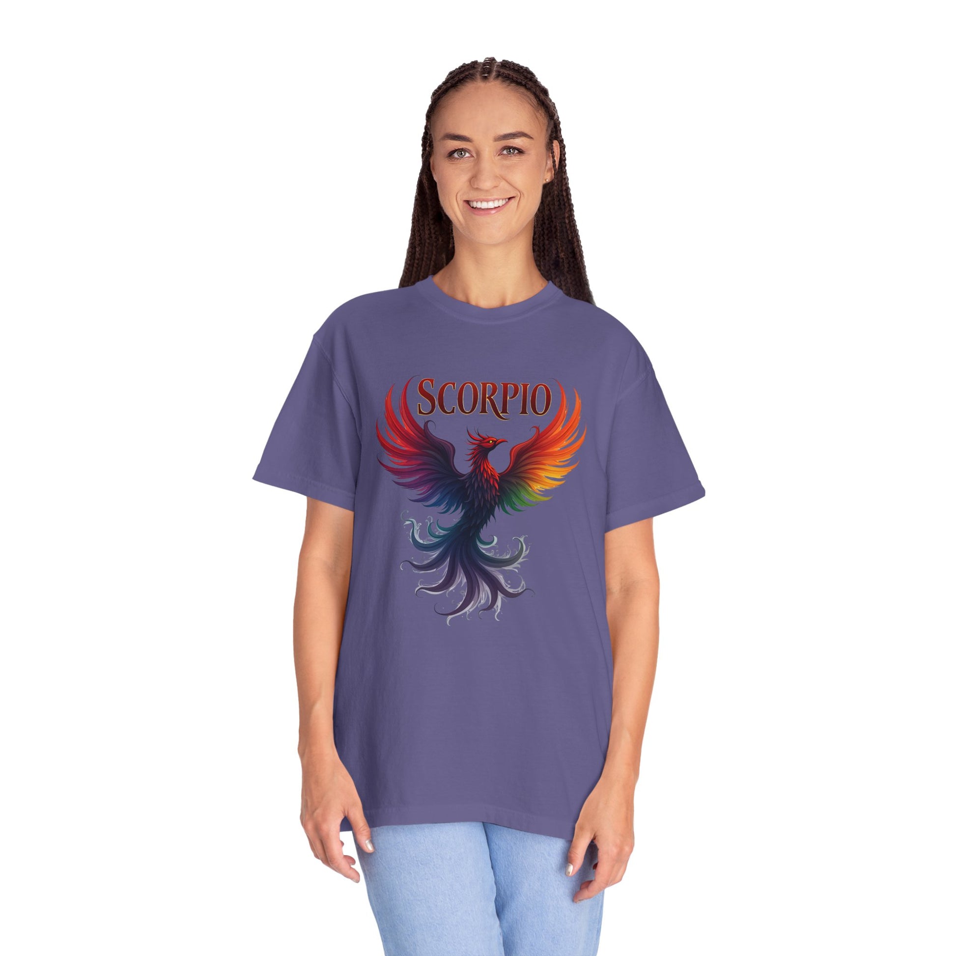 Like the phoenix rising from its own ashes, Scorpio doesn’t just evolve — it transcends. 🔥🕊 The "Scorpio Phoenix" tee captures the soul of transformation with a stunning, full-spectrum phoenix in radiant rainbow wings. Bold reds and fiery oranges burst into mystical purples and shadowy indigos, symbolizing rebirth, power, and personal alchemy — all core Scorpio themes. This is the Scorpio t-shirt for those who don’t fear endings, because they know what follows: something more beautiful, more powerful, and 100% them. Perfect for Scorpios who own their shadow and wear their evolution like art.