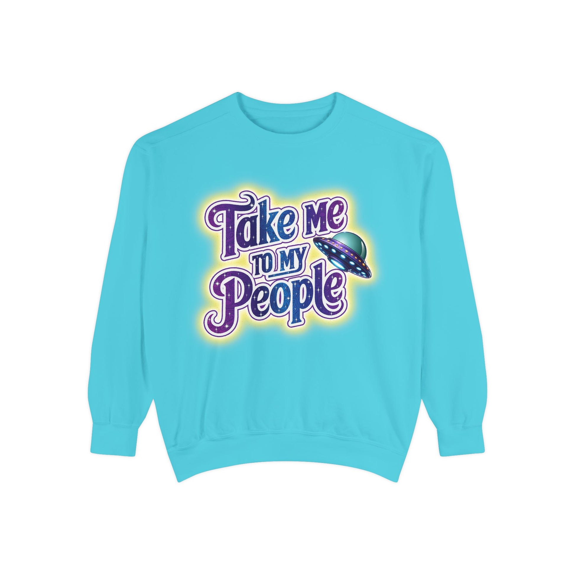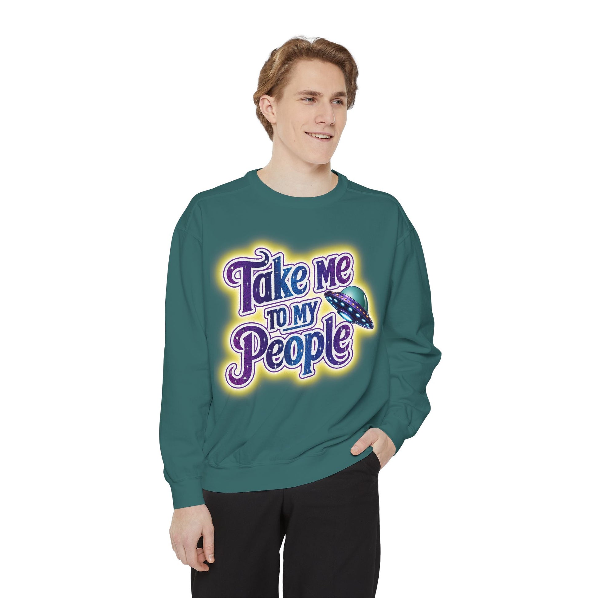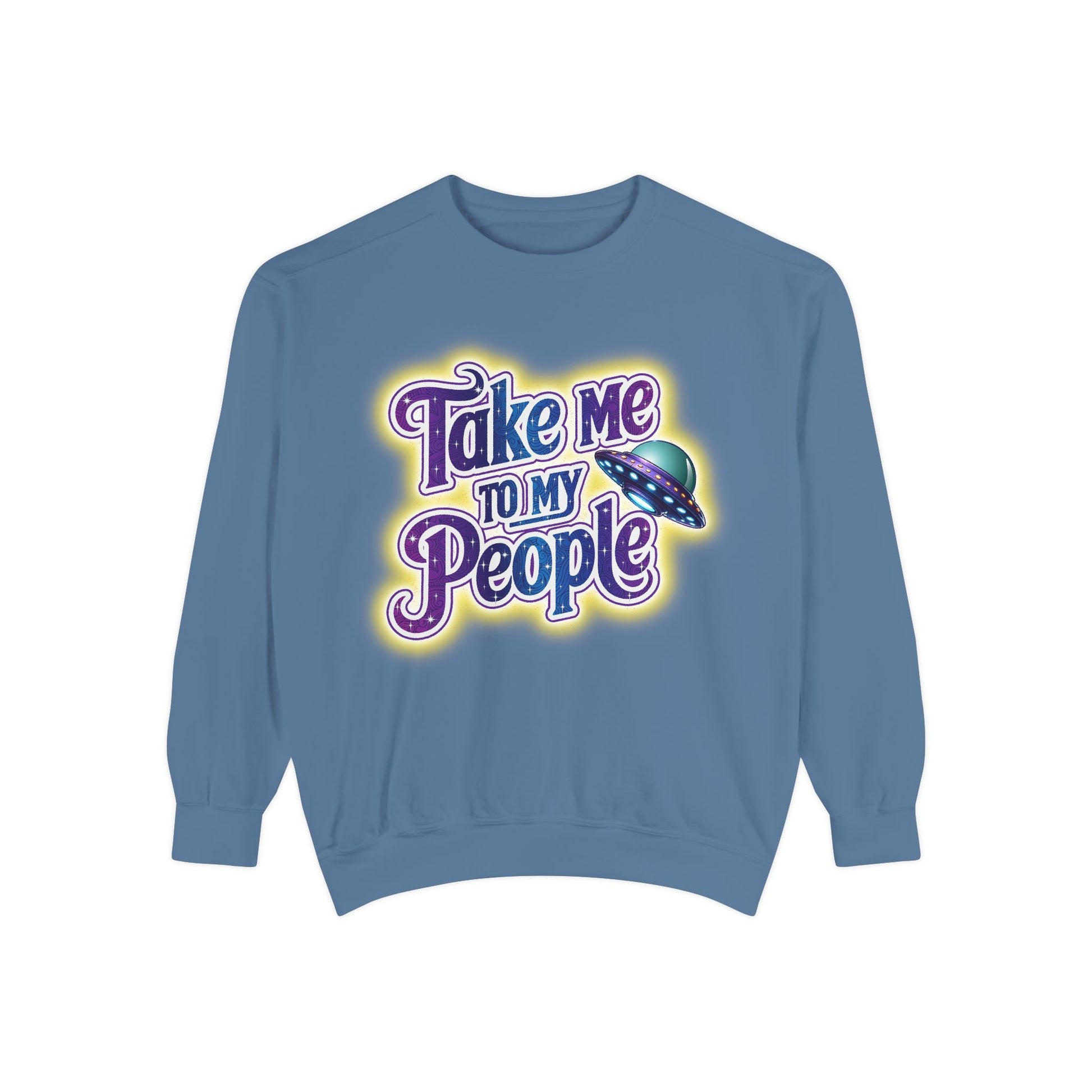 Answer the cosmic call in this premium Take Me To My People sweatshirt, a playful tribute to those who feel a little out of this world. With glittery retro lettering and a shimmering UFO beaming through the stars, this sweatshirt channels intergalactic humor and mystical charm in equal measure. It’s perfect for stargazers, alien enthusiasts, and seekers of their cosmic tribe—whether you’re chilling on Earth or waiting for the mothership to arrive.